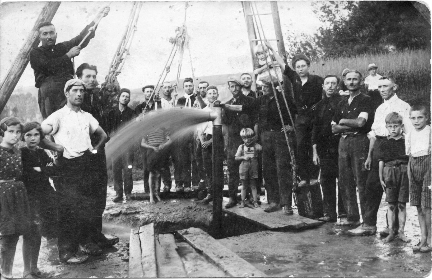 Foto 1 - La terebrazione di un pozzo a Cantarana (probabile 1935). Per gentile concessione della signora Delfina Sansalvadore Caldera